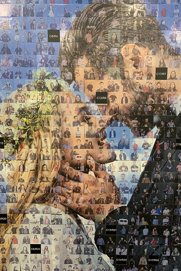 Le mur de mosaïque photo fait tout le monde à l’événement se sentir comme une fois que vous regardez la vue d’ensemble, nous sommes tous en elle ensemble. De près, vous voyez des photos individuelles – plus loin en arrière, la mosaïque est révélée.